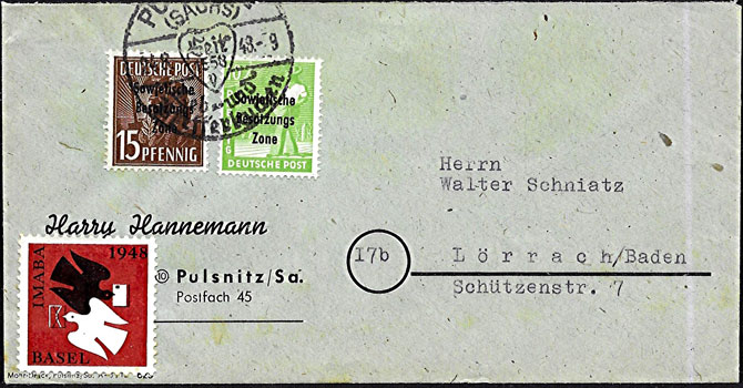 Internationale Markenausstellung Basel 1948 | Originalbeleg Brief von Pulsnitz / Sachsen nach Lörach/Baden |