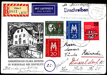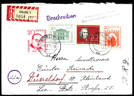 Originalbeleg Brief von Zittau Sachsen - nach Düsseldorf / Nordrhein-Westfalen | auf der Briefvorderseite neben "EINSCHREIBEN" ein Stempelaufdruck "Sammlermarken! Bitte Leicht und sauber stempeln!" |