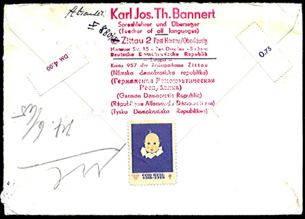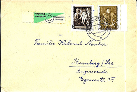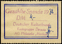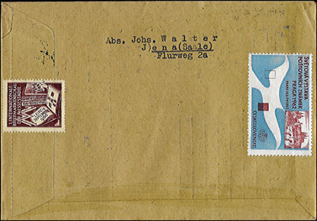 Hier im Kapitel Nr. I. werden Belege ausgestellt, die von (nicht unbedingt im KB organisierten) "Sammlern" verwendet wurden und die mit den unterschiedlichsten Vignetten versehen sind. Es wurden alte und ausländische (verfügbare) Vignetten als Verschlussmarken, Überkleber oder Werbeträger genutzt. Kurioserweise wurden sogar mangels Verfügbarkeit von themenbasierten Vignetten auch Lebensmittel-Ettiketten als Verschlussmarken genutzt. Die vorliegenden Belege dokumentieren, dass auch (kurz) nach dem Krieg der Wunsch nach einer philatelistischen Freizeitbeschäftigung bestand. |