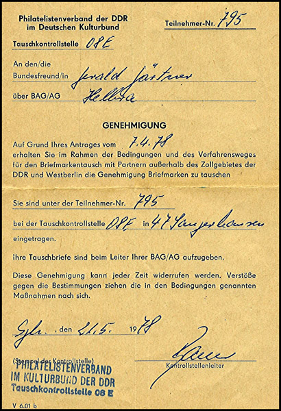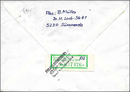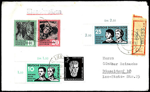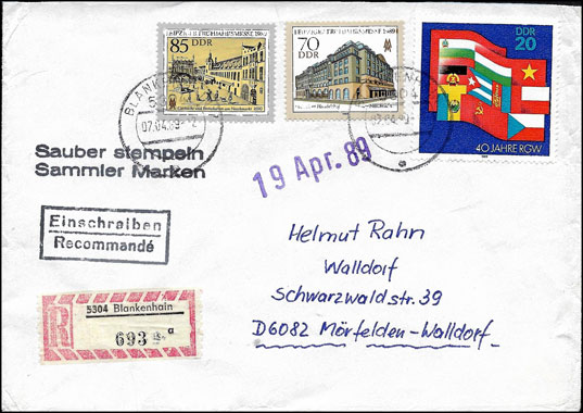 Einschreiben d. Deutschen Post | Stempel - Philatelistenverband d. DDR Tauschkontrollstelle 09 B | |||||||||||