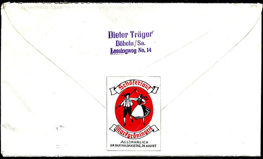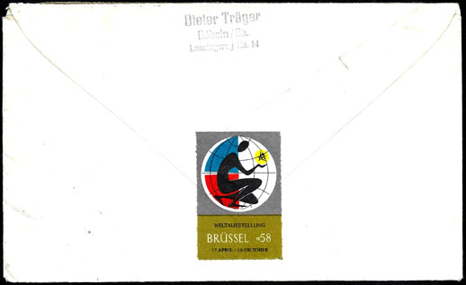 linke Seite des Briefes - Deutsche Vignette - 1. Internationale BMS der Messestädte von 1960 als Verschlussmarke genutzt |