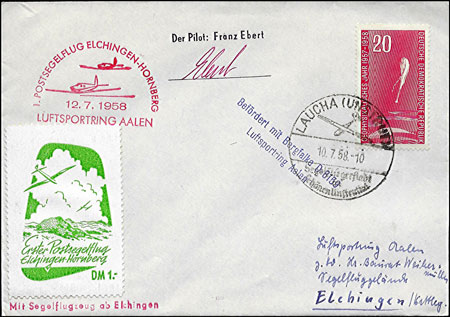 1. Postsegelflug Elchingen - Hornberg | Original Beleg |