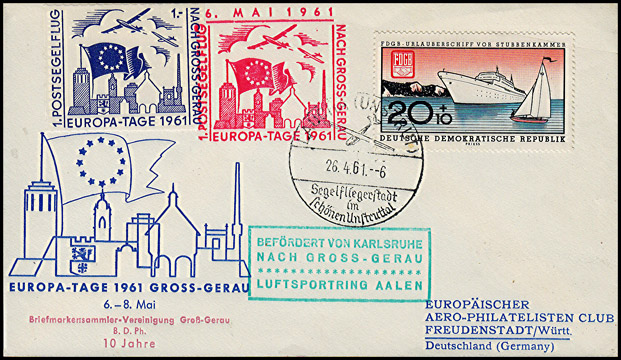 1. Postsegelflug Groß-Gerau nach Laucha an der Unstrut EUROPA Tage 1961 (10 Jahre BdPh) |