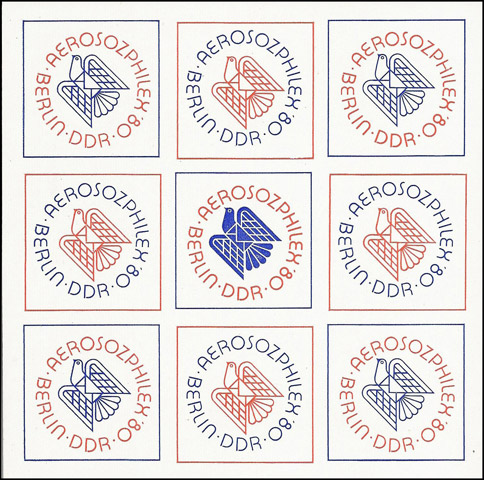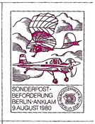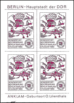 BMA Aerosozphilex 1980 - Bogen | BMA Aerosozphilex 1980 - Einzelmarke | Interflug Berlin-Anklam (Geburtsort von Otto Lilienthal (als Bogen und Einzelvignette) | |||||||