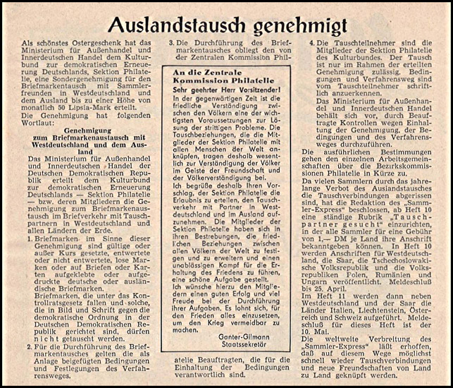 I. - Sammlerbelege (1949 Gründung der DDR - Auslandstausch offiziell ab 1954) |