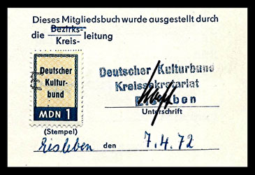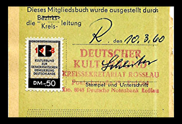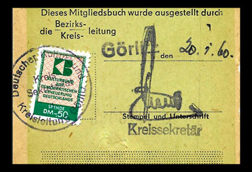 mit "Aufnahmegebühr" Grundfarbe gelb-schwarz | identisches Layout wie 1951 Grundfarbe gelb-blau | |||||||