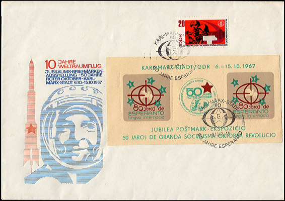Vignetten-Block-Ausgabe anlässlich der Briefmarkenausstellung - zum 50. Jahrestages der "Oktoberrevolution" in Russland | ||