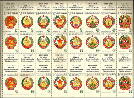 Sowjetrepubliken kompletter Bogen - 50 Jahre Große Sozialistische Oktoberrevolution | |||