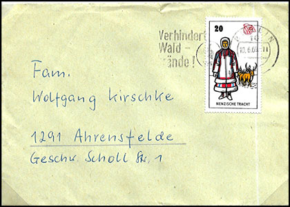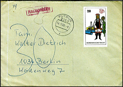 Von dieser Serie sind 12 verschiedene Marken auf Brief bekannt. Diese Briefe wurden im Zeitzraum vom Juni bis August 1969 von den Postämtern in Puttbus, Berlin und Lauterbach versandt. Nur in "EINEM" Fall wurde Nachporto erhoben! Die Briefe enthielten "KEINEN" Absender. Acht dieser Briefe enthielten nach Ihrer Öffnung keinerlei Nachricht (Leeres Papier). |