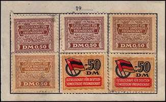 1949 / 4 Stempelaufdruck = GSKS = G esellschaft zum S tudium der K ultur der S owjetunion | |||||||||