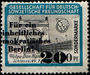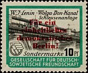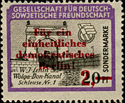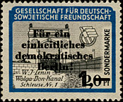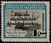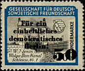 Serie wie 1953, mit rotem Überdruck "Für ein einheitliches demokratisches Berlin". Weitere Varianten sind wahrscheinlich. | ||||||