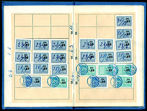 Ausweis DSF Westberlin - mit Marken von 1963 bis 1970 gefüllt | |||||||||