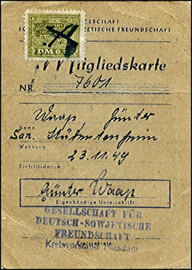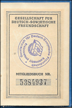 GESELLSCHAFT FÜR DEUTSCH-SOWJETISCHE FREUNDSCHAFT GROSS-BERLIN - gedruckt schwarz/gold |