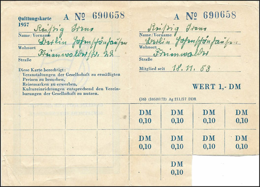 DSF Logo ohne Staatswappen der DDR Zählnummer ohne Buchstaben |