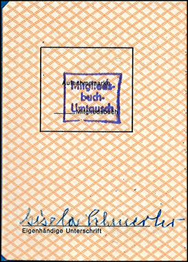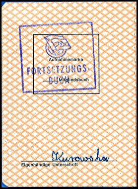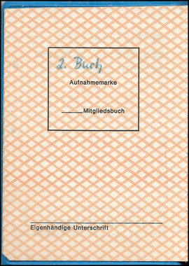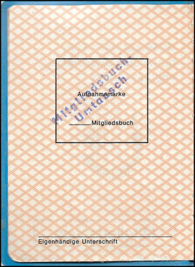 Einband - Dunkelblau Eintrittsmarke auf Einband | grüne Marke auf grünem Grund | Mitgliedsbuch-Tausch |