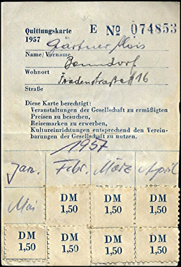 Mitgliedskarte; Landesgesellschaft Mecklenburg / Karton - grünton | |||