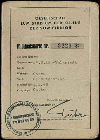 GESELLSCHAFT ZUM STUDIUM DER KULTUR DER SOWJETUNION geprägt goldfarben | GESELLSCHAFT ZUM STUDIUM DER KULTUR DER SOWJETUNION GROSSBERLIN - geprägt goldfarben |