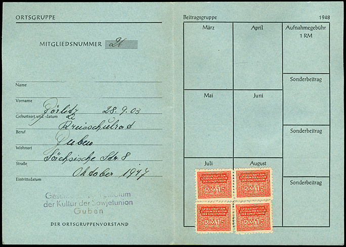 GESELLSCHAFT FÜR DEUTSCH-SOWJETISCHE FREUNDSCHAFT - gedruckt schwarz |