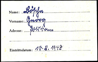Vorläufige Mitgliedskarte; Karton - blaugrün | |||