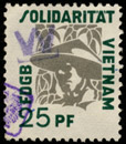 schwarzer Handstempel "DM", mit Zusatzhand-stempel "Vietnam"