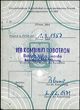 Ausweis von 1979 VEB Kombinat Robotron - Hoyerswerda | |||||
