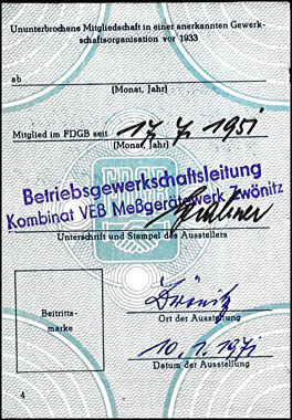 Ausweis von 1971 VEB Kombinat VEB Meßgerätewerk Zwönitz | ||||||||||