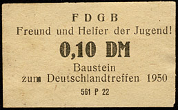 DM 20.- | Weltkongreß der Lehrer und Erzieher | 10 Pfennig Sonderbeitrag; könnte aber vom Deutschen Volkskongress initiiert sein |