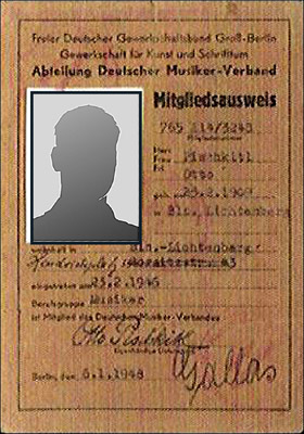 Mitgliedskarte vom Verband der Kulturschaffenden im Freien Deutschen Gewerkschaftsbund | FDGB Groß-Berlin, Gewerkschaft für Kunst und Schrifttum, Musiker Verband | |||||||||