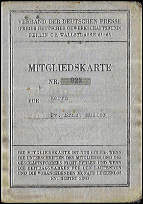 Mitgliedskarte vom Verband Deutscher Presse (im FDGB) | ||||||||||