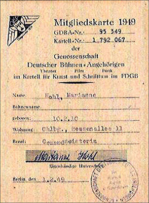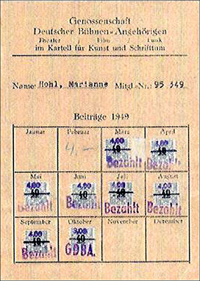 Die "Genossenschaft Deutscher Bühnen-Angehörigen" (GDBA) im Kartell für Kunst und Schrifttum im FDG B" besaß nicht nur eigene Mitgliedsausweise, sondern die Mitglieder bezahlten auch doppelte Beiträge: einen (höheren) Beitrag an die Genossenschaft und einen zweiten Beitrag an den Ortsverband des FDGB.