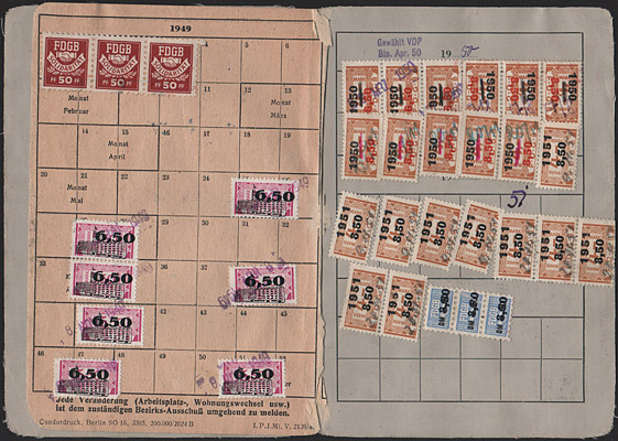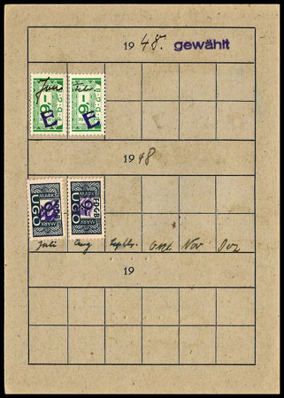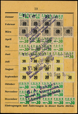 für Juni 1946 durch einen FDGB-Ausweis aus Stassfurt/Sachsen-Anhalt belegt | Freier Deutscher Gewerkschaftsbund; Ortsgruppe Köthen u. Umgebung | ||||||||||