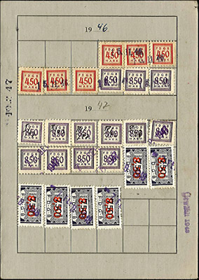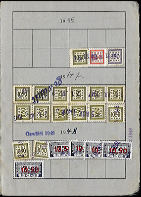 Ausgabe der GDBA (Genossenschaft Deutscher Bühnen-Angehörigen), bisher bekannte Überstempelungen mit korrigierten Werten der Serie 1947 / 4 und 1945 / 6 | |||||||||||