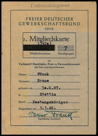 1946 Achtung! Diese Marke wurde im namensgleich gegründeten FDGB in Westdeutschland verwendet |