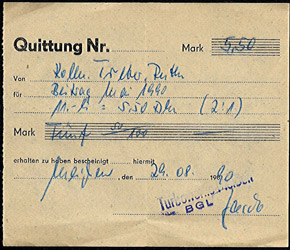 KURIOSITÄT: Beitragszahlung - per Quittung (März 1990) | Beitragszahlung - per Quittung (August 1990) | |||||||||||||||||