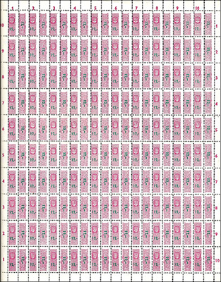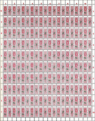 Die Beitragsmarken wurden in Bögen zu jeweils 100 Stück verausgabt | |||||||||||
