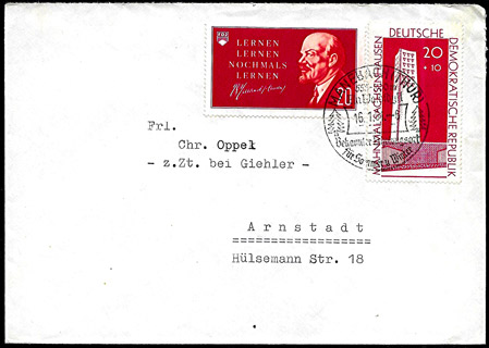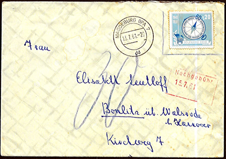 20 Pf Spendenmarke von 1959 10 Jahre DDR (mit Nachporto durch Deutsche Post) |