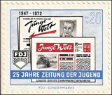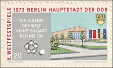 20 Pf Spendenmarke zu III. Weltfestspielen (zusätzlich zum Porto) |
