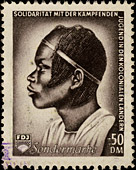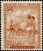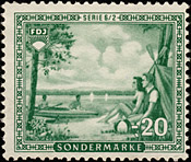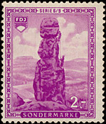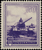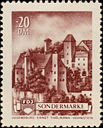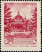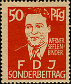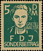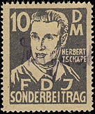 Nach Erscheinen dieser Marken wurde beschlossen, den kompletten Satz mit neuen Markenbild drucken zu lassen. Unter Anderem wurden die Buchstaben verändert, was deutlich an der Breite des "N" und des "D" im Wort "Sonderbeitrag" sichtbar ist. |