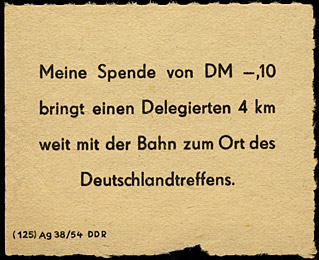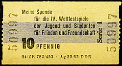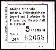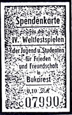 Spendenmarken zu den IV. Weltfestspielen (Kopien Katalog Schlegel 2004) | Spenden.Beleg - FDJ Organisation Meissen | ||||||||