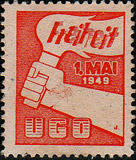 Marke vom 1. Mai 1949 mit Schwarzem Überdruck 1. Mai 1950