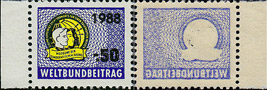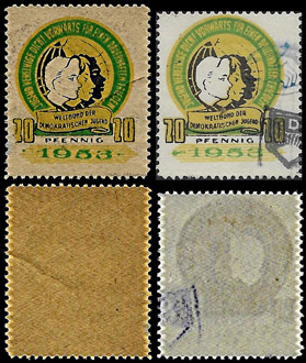 Die Beitragsmarken der Jahresausgabe 1953 liegen in zwei Varianten vor. Diese sind sowohl vom Format, als auch vom verwendeten Papier unterschiedlich |