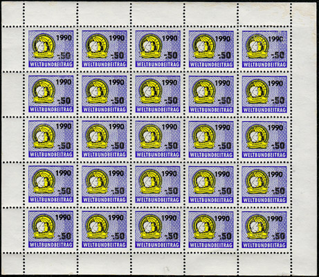 Die Marken wurden in Bögen zu je 25 Stück ausgegeben | Marke mit rückseitigem 1 Phasen Druck bekannt | Vergleichsmarken einzeln | |||||||||
