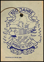 | Pappvignetten - Anhänger, 100 Jahre Freiwillige Feuerwehr Limbach / Vogtland | ||||||