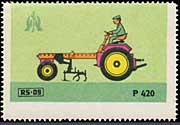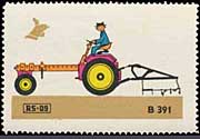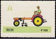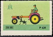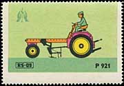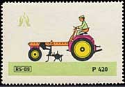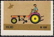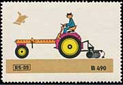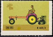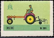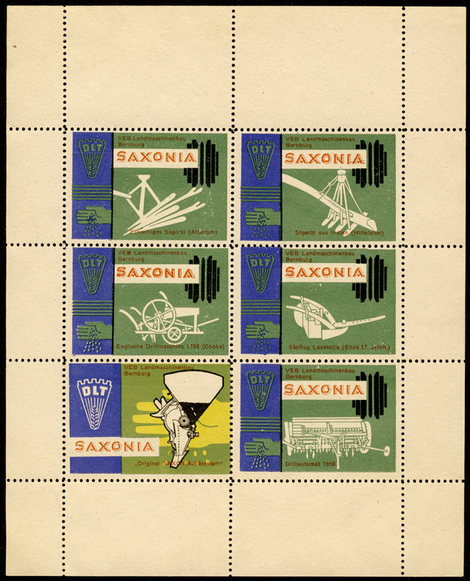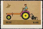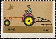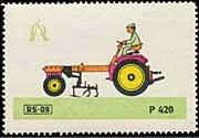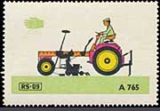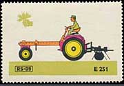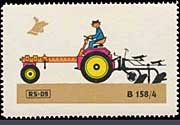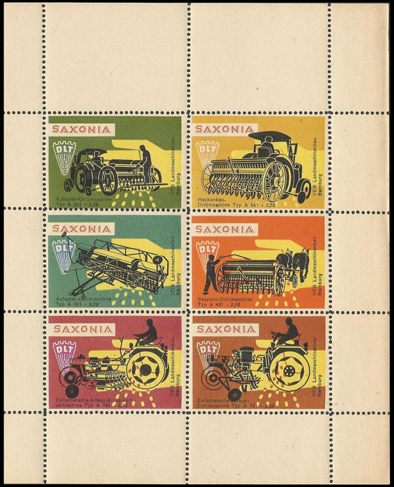 Serie "Drill und Sämaschinen1" (Einzelmarken des abgebildeten Blockes - Streifen links in blauviolett) | Serie "Drill und Sämaschinen 2" (Einzelmarken des abgebildeten Blockes - ohne seitlichen Streifen) |
