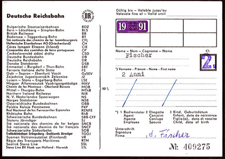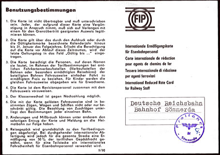 Internationalen Ermäßigungskarte für Eisenbahnpersonal - Außenseiten | Internationalen Ermäßigungskarte für Eisenbahnpersonal - Innenseiten |