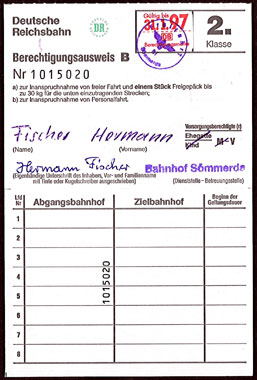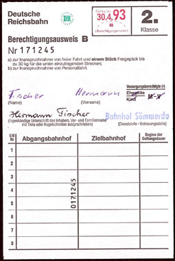 Fahrpreisvergünstigungs-Marken (DB AG) - auf Ausweis der Deutschen Reichsbahn | Zeitmarken | ||||||