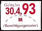 Berechtigungs-Marke mit Logo der DR | Berechtigungs-Marke mit Logo der DR |