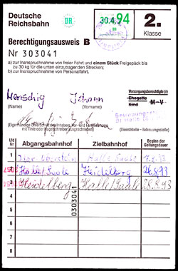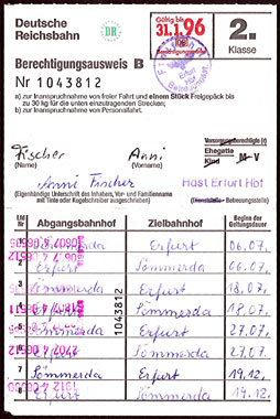 Fahrpreisvergünstigungs-Marken (DR) - auf Ausweis der Deutschen Reichsbahn | Zeitmarken | ||||||