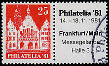 Internationale BMA "Philatelia" 1981 - meist als Werbeträger auf Briefen genutzt (Reprint von Briefmarken 1948 Freimarken Bautenserie - Alliierte Besetzung) |