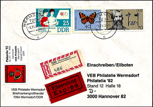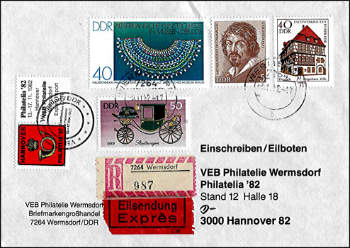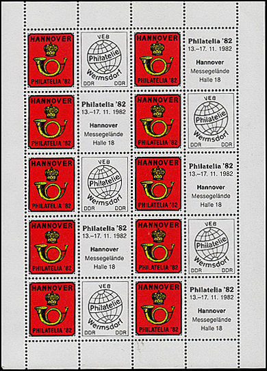 Internationale BMA "Philatelia" 1982 - kompletter Vignettenbogen | als Werbeträger auf Briefen genutzt | ||||||